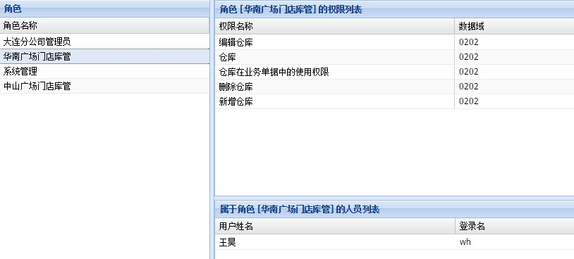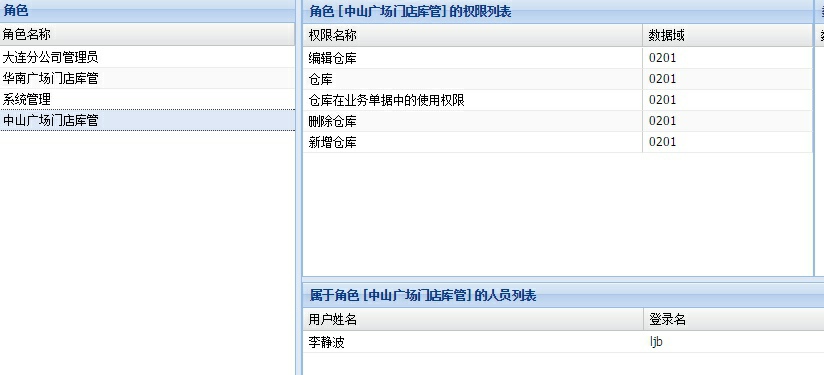 【中山陵广场门店库管】这个角色对应的用户是 ljb(刘俊博),其数据域是0201, 0201代表的是【南京分公司\中山陵广场门店】。